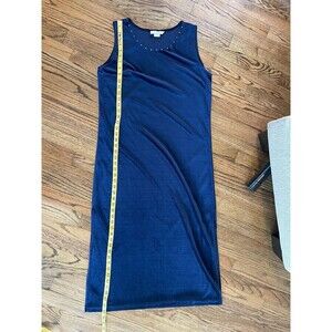 Vintage 1990s Miss & Mrs Blue Crushed Velvet Midi Rhinestone Slit Large Dress