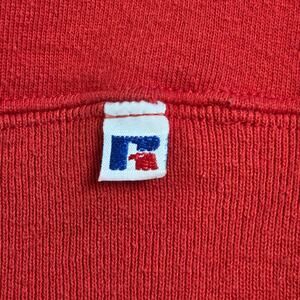 Authentic 1990s Russell Athletic crewneck sweatshirt featuring the Montreal Canadiens embroidered team logo. Made in the USA from a durable cotton-poly blend with the classic Russell Athletic tag. Soft interior fleece and excellent retro fit for any NHL fan or vintage sportswear collector.