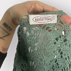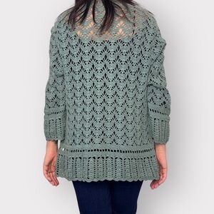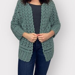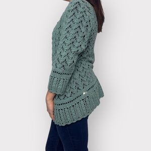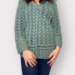 Vintage 1990s Northern Reflections Sage Green Knit Crochet Cardigan Sweater