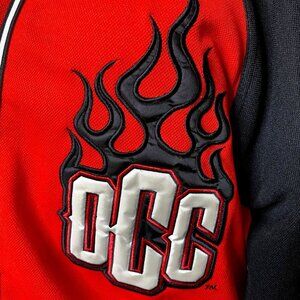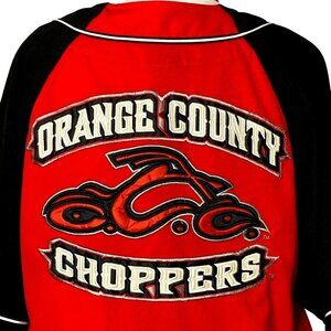 A nostalgic throwback to the 1990s, this Orange County Choppers baseball jersey captures the essence of custom motorcycle culture. Featuring bold embroidered patches and a striking red and black design, this limited-edition jersey is a collector's dream. Crafted with attention to detail, it embodies both style and rugged durability.