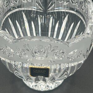 This elegant Oneida crystal bowl features beautifully etched roses, adding a touch of timeless sophistication to any setting. Perfect as a decorative centerpiece, for serving candies, or holding potpourri, its sparkling clarity and delicate design make it a versatile and charming piece.