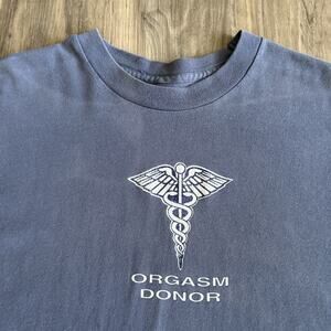 Vintage 1990s Orgasm Donor T-Shirt Men's Size L Faded Blue Sex Funny