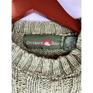Bring classic 90s style to your wardrobe with this vintage Outback Red sweater. Crafted from a breathable cotton, linen, and ramie blend, it features a rich green color and a timeless design. This piece is in great vintage condition with no holes or stains—perfect for layering or adding a touch of retro charm to your outfit.