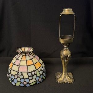 Vintage 1990s PartyLite Mosaic Hydrangea Glass Tealight Lamp with Brass Stand