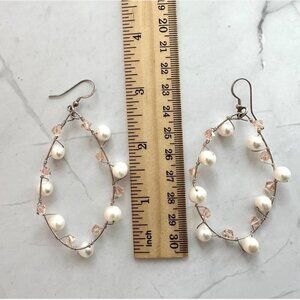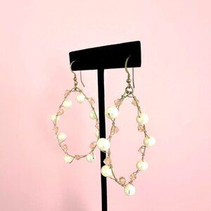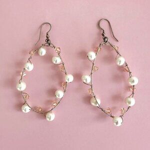 Wired pearl and pink crystal beads hoop earrings as pictured. I do not know if the pearls are real (sold as faux).