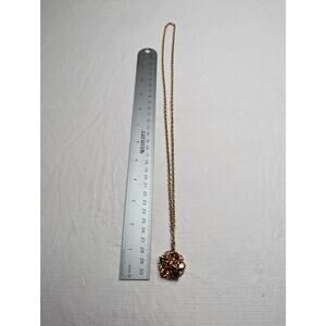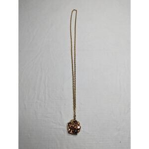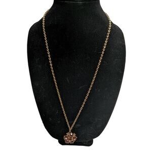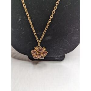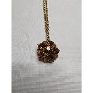 Vintage 1990s Pendant Style Gold Tone Necklace w/ Amber Rhinestones