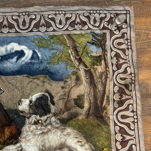 Vintage 1990s Perry Ellis Hunting Dogs Silk Scarf with Border and Hand Rolle