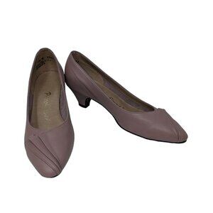Vintage 1990s Piccolinos Mauve Pink Blush Leather Career Kitten Heels Sz 7.5 USA