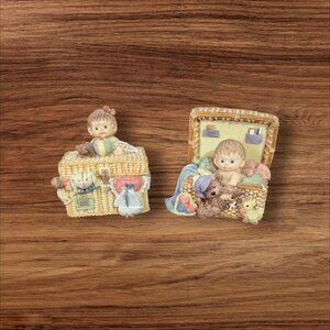 These adorable figurines depict babies exploring toy baskets with an enthusiasm we wish we had on Monday mornings. A charming addition to any collection.