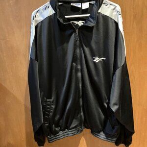 Vintage 1990's Reebok Track Jacket Black 2XL Logo Sleeves