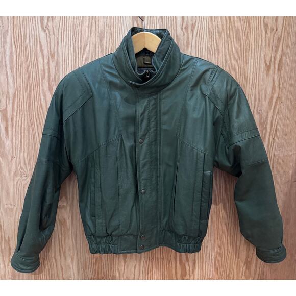 Vintage 1990s Saxony Leather Jacket Bomber Green Rare Men's Large Excellent