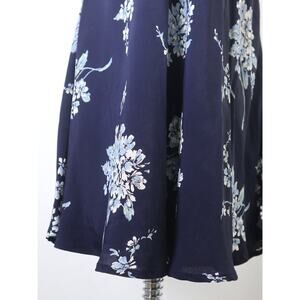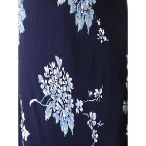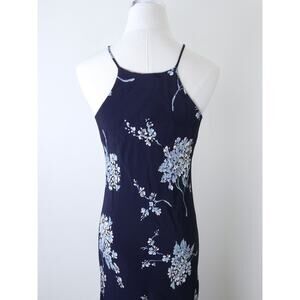Vintage 1990s Size 4 Rayon Slinky Maxi Dress Navy Blue Floral Print