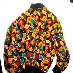 Vintage 1990s Spenser Jeremy Silk Matchbook Print Bomber Jacket Coat