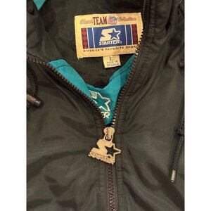 Up for sale is a Vintage 1990's Starter Miami Dolphins NFL Puffer Hooded Jacket Black Men's Large. Very good vintage condition. You get exactly what you see in the pictures. Inventory number C1971.