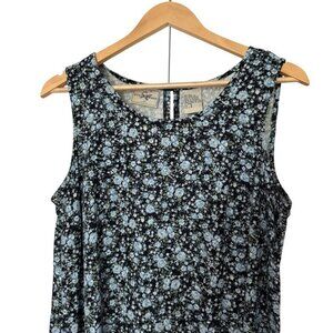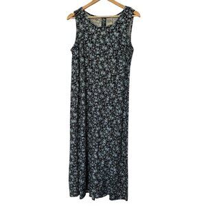 Vintage 1990s Studio Ease Linen Blend Dark Florals Blue Maxi Shift Dress Sz 8