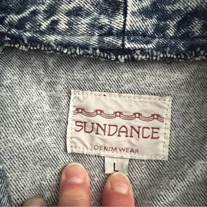 Absolutely amazing vintage Sundance Acid Wash Denim Duster jacket with two front slant pockets, no closure.