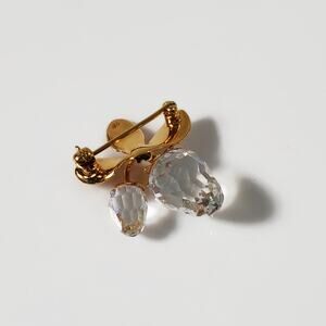 This is a gorgeous 1990's Swarovski Crystal Memories pin/brooch of strawberries with gold tone leaves. Stamped with the Swan logo.