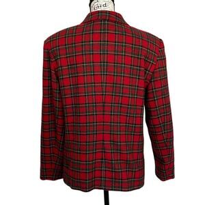 Vintage 1990s Tartan Plaid Blazer Jacket Zip Front Red Christmas Winter Festive
