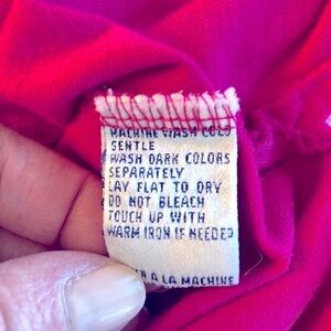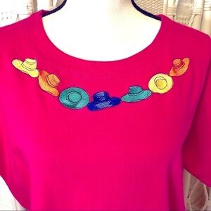Vintage 1990s Y2K novelty embroidered hats fuchsia pink tee short sleeve Evan Picone Sport size large