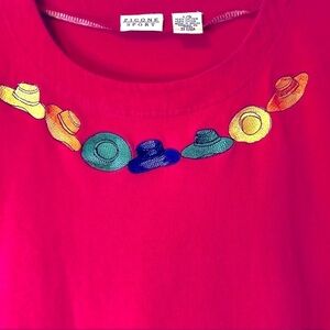 Vintage 1990s Tee Pink Embroidered Hats Evan Picone Short Sleeve size Large