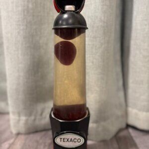 Here’s a rare Texaco gas pump lava lamp from 1996—an ideal piece for fans of classic gas and oil collectibles. The lamp’s rich red color and Texaco branding capture the spirit of vintage advertising, making it a standout for display. Manufactured in Taiwan, this original item is a cool find for anyone who appreciates unique décor with a retro vibe.