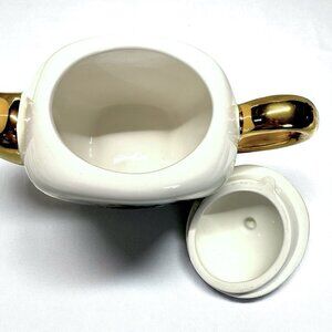 Features Gold-tone handle, spout, and lid knob