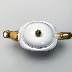 Features Gold-tone handle, spout, and lid knob