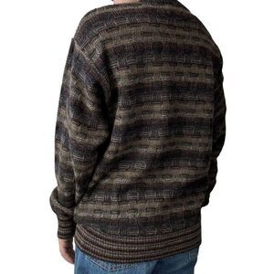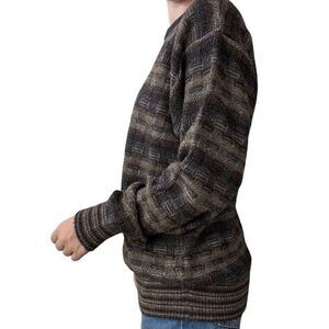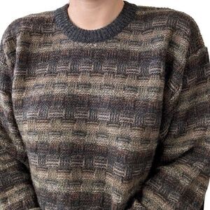 Vintage 1990s Top Knit 100% Alpaca Brown Chunky Geometric Oversized Sweater Sz L