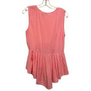 Vintage UFO sleeveless blouse top in pink. From 1990s. Button front closure. No collar, round neck. Peplum waist with delicate art deco inspired pleating details in back, longer in back. Lightweight rayon material. In great vintage condition.