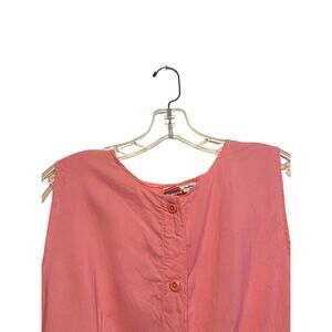 Vintage 1990s UFO Sleeveless Blouse Top Size Medium Pink Pleated Romantic Button