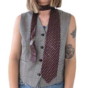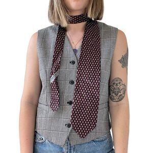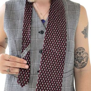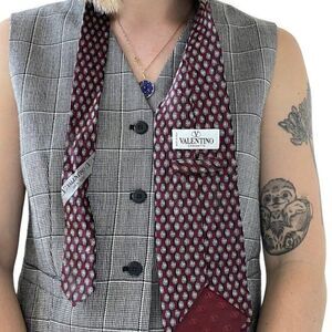 Vintage 1990s Valentino Burgundy Red Geometric Silk Neck Tie Scarf Preppy