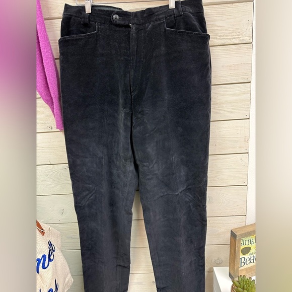 Authentic luxury designer pants by Versace Classic V2. Made in Italy, crafted from 100% cotton with a plush velvet finish and fully lined in polyester. Timeless straight-leg cut with button/zip closure, belt loops, and pockets. A sophisticated vintage Versace piece that adds instant style.