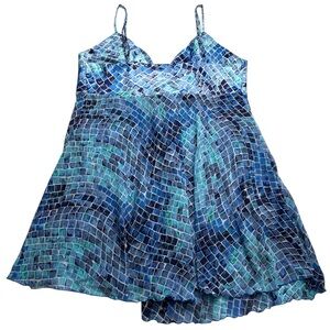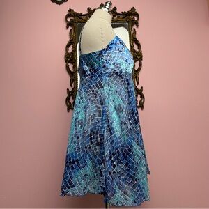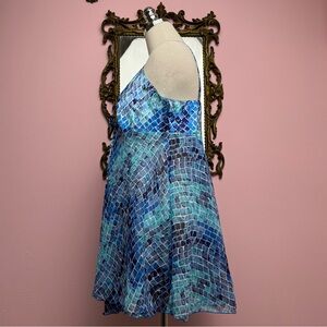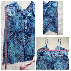 Vintage 1990’s Victoria’s Secret Pink Heart Label Mosaic Reptile Stained Glass Blue Slip Nightie Large