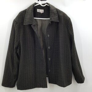 Vintage 1990s Women's 3X Briggs Blazer Boxy Green Plaid Woven Lined Long Sleeve
