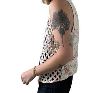 Vintage 1990s Womens Floral Lattice Preppy Grandmacore Vest Waistcoat Sz XL