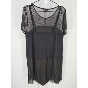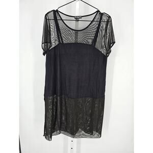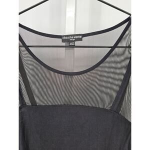 Vintage 1990s Y2K Cha Cha Vente Womens Sz L Black Mesh Tunic Top Short Sleeve