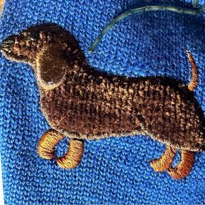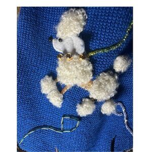 Vintage 1990’s size medium Blue Cardigan with Dog, paw and Bone Embroidery.