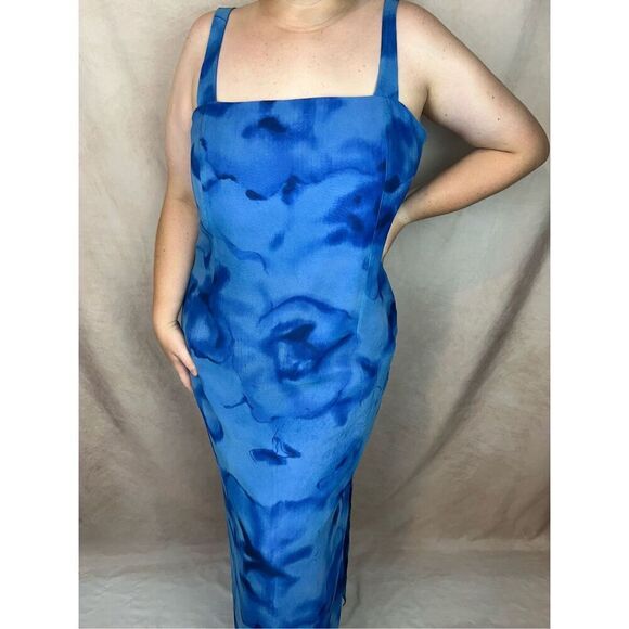 1990s XL Blue Watercolor Semi Formal Gown