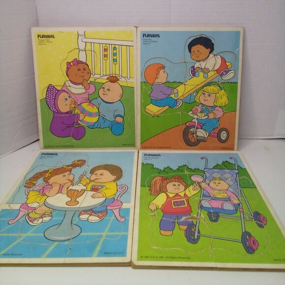 Vintage 1991 Cabbage Patch Kids Puzzles Wood Lot of 4 Playskool Ages 2-5