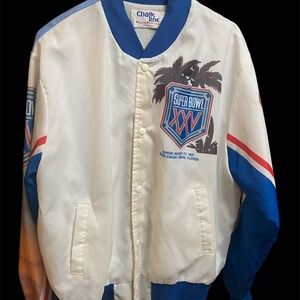 Vintage 1991 Chalk Line Super Bowl XXV Silver Anniversary Satin Jacket L Rare