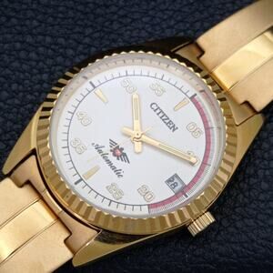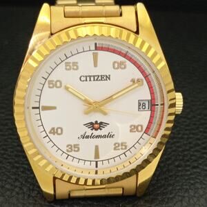 Vintage 1991 Citizen Automatic Mens Gold Watch W/daydate & Red accents
