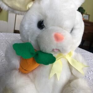 Keywords: vintage Easter bunny plush, 90s Fairview rabbit, stuffed animal décor, white bunny with carrot, satin ears paws, collectible plush toy, kawaii, nursery decor