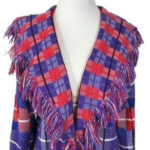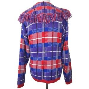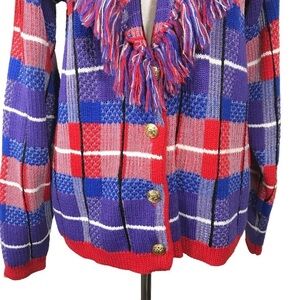 Vintage 1991 Gene Ewing Bis Knit Fringe Collar Flannel Cardigan Wool MEDIUM