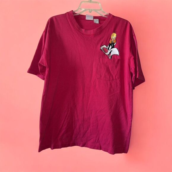 Vintage 1991 Looney Tunes Acme Tweety Sylvester Embroidered Pocket T-Shirt