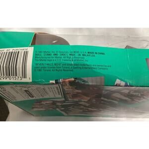 The doll is dressed in a brown jacket, a green shirt, and blue jeans. The packaging features the "Beverly Hills 90210" logo and images of the show's main cast, including Jason Priestley as Brandon Walsh, alongside other cast members. The box also has the text "TV's hottest teen stars!". This doll, produced by Mattel, is a collectible item from the early 1990s, coinciding with the peak popularity of the television series