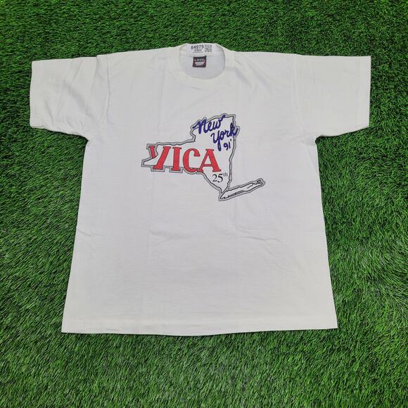 Celebrate history with this vintage 1991 New York 25th Anniversary VICA shirt. Womens XL, white tee with classic 90s graphics.