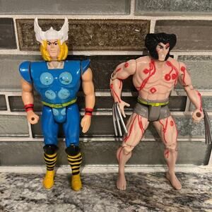 Toy biz Marvel legends vintage 1991 God of Thunder 5” Thor, and 1992 X-men 5” Wolverine weapon action figures. Thor has paint wear on his chest. In nice clean condition from a smoke free home.