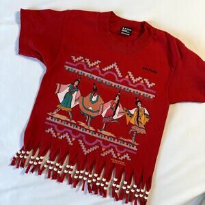 Vintage 1992 Arizona Native American Dancing Beaded Fringe Top Sz 6-8