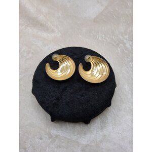 Vintage 1992 Avon Gold Tone Sculpted Button Push Back Statement Earrings
