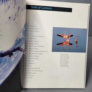 Features: Table of contents covers topics such as World War II, Alaska Highway, Dorothy Parker, Columbus Voyages, Olympic Games, minerals, wildflowers, space, New York Stock Exchange, Christmas, and more.